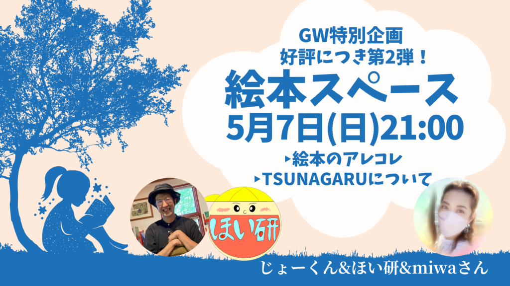 2023年5月7日(日)20:00〜Twitterスペースにて前回大好評だった絵本スペース企画第2弾を開催します